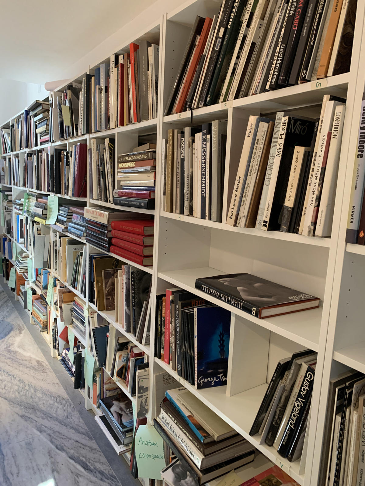 Die Bibliothek ist Ausdruck des Selbstverständnisses der Scuola di Scultura, praktisch-gestalterisches Arbeiten mit theoretischer Vertiefung zu verbinden. Sie versteht sich als Ort des Nachdenkens, des Vergleichens und der Inspiration – als ruhiger Gegenpol zur handwerklichen Arbeit im Atelier und als wertvolle Ergänzung zum individuellen künstlerischen Prozess.