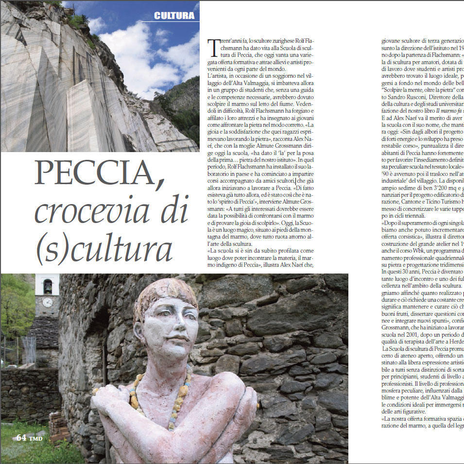In Hochglanzmagazin "Ticino Management - Donna" ist ein doppelseitiger Artikel über die Geschichte der Bildhauerschule und die Jubiläumsausstellung "scultural... mente Peccia" erschienen.