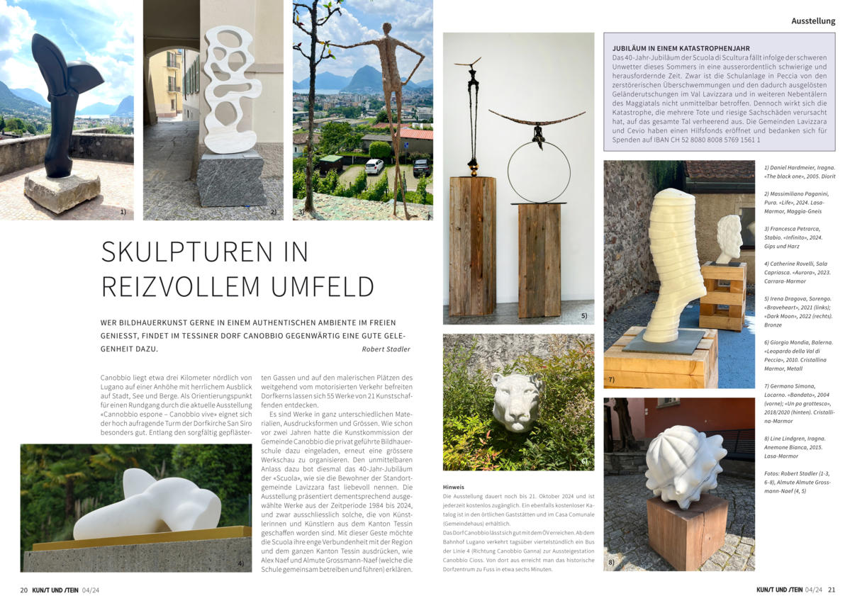 In der August-Ausgabe von KUNST UND STEIN ist ein doppelseitiger Artikel von Robert Stadler über die Jubiläumsausstellung 40 Jahre Scuola di Scultura erschienen.